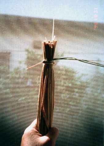 穂先の方を折り返して蓋にします。2カ所縛ってできあがり。